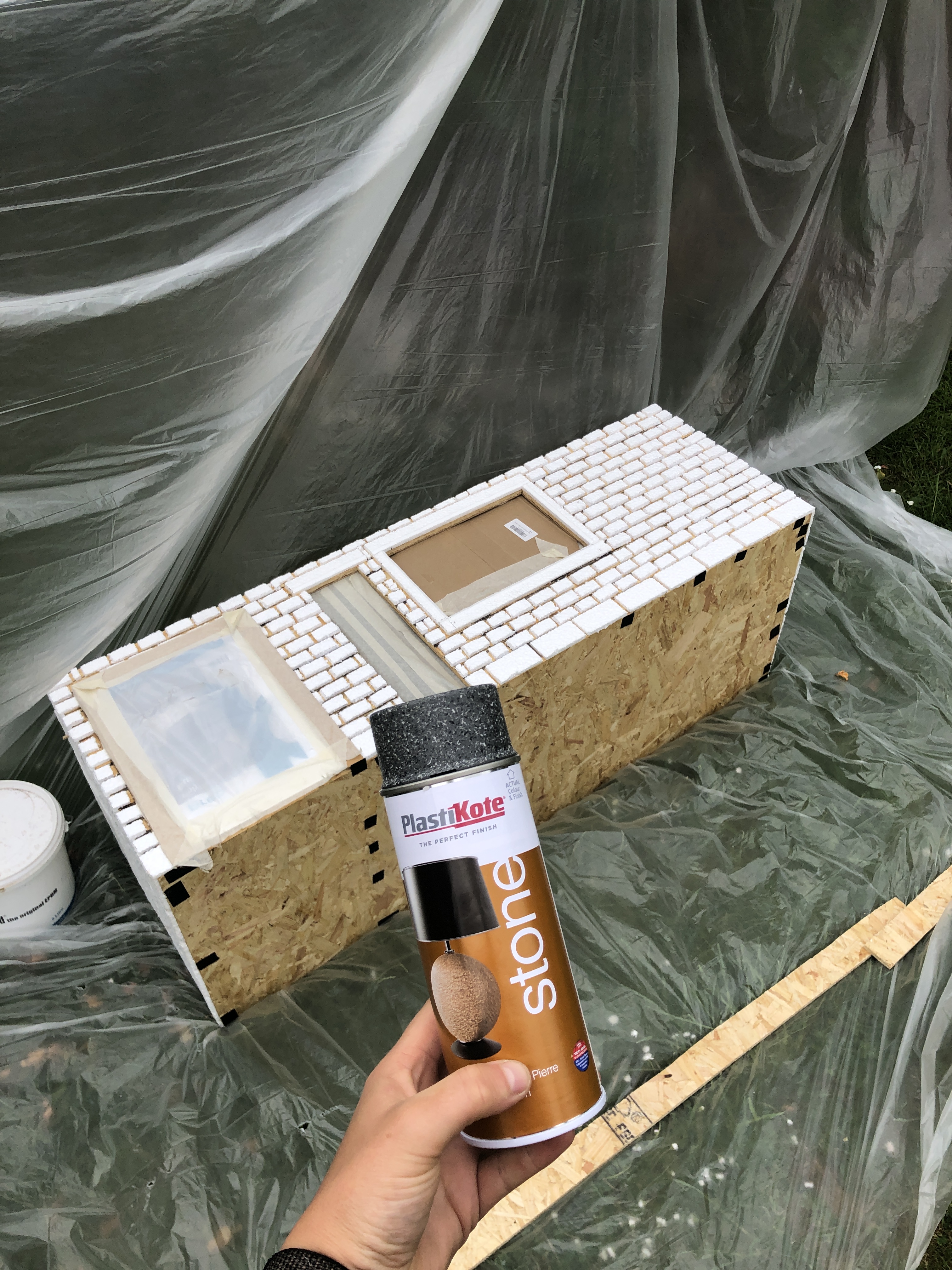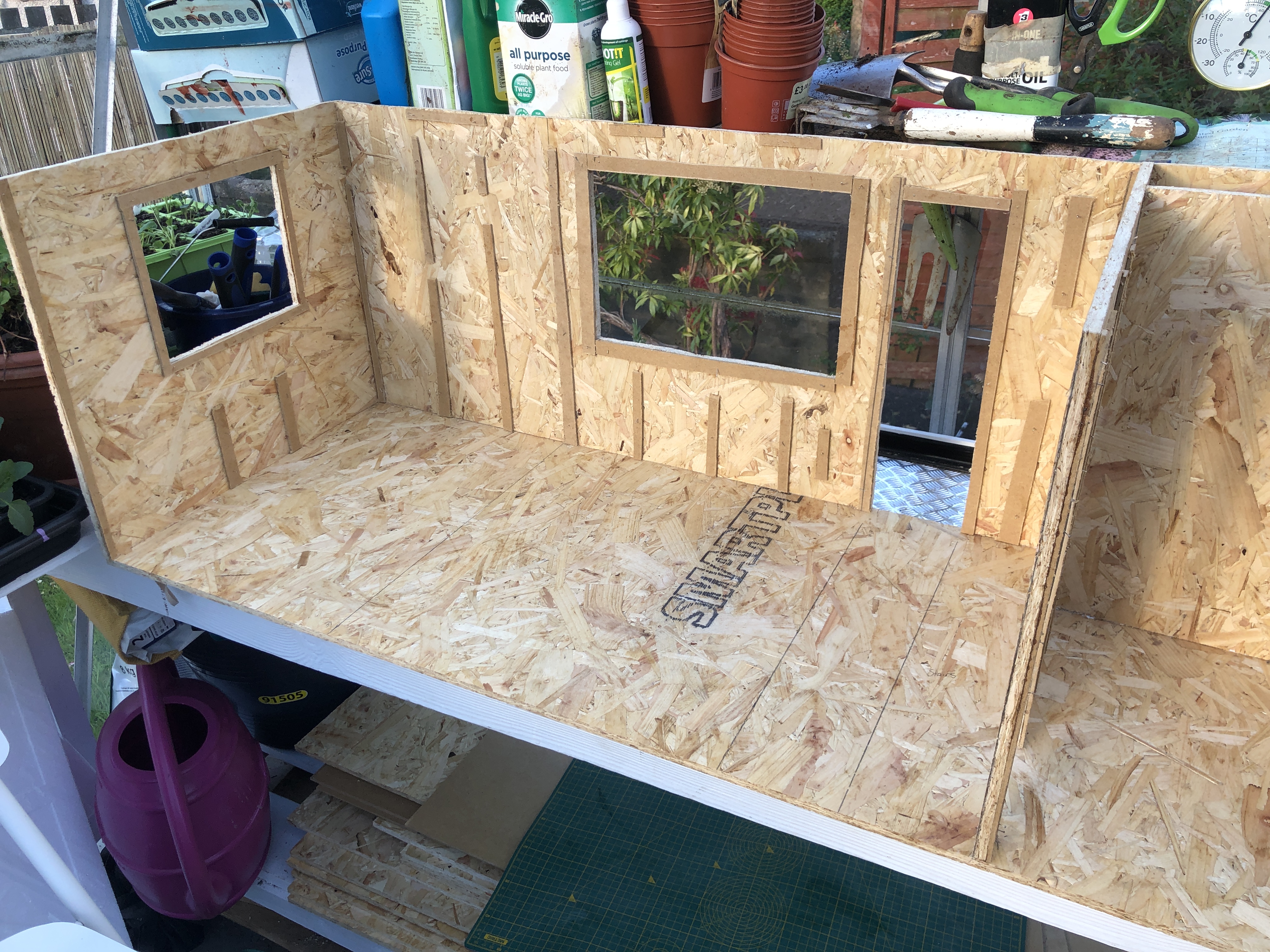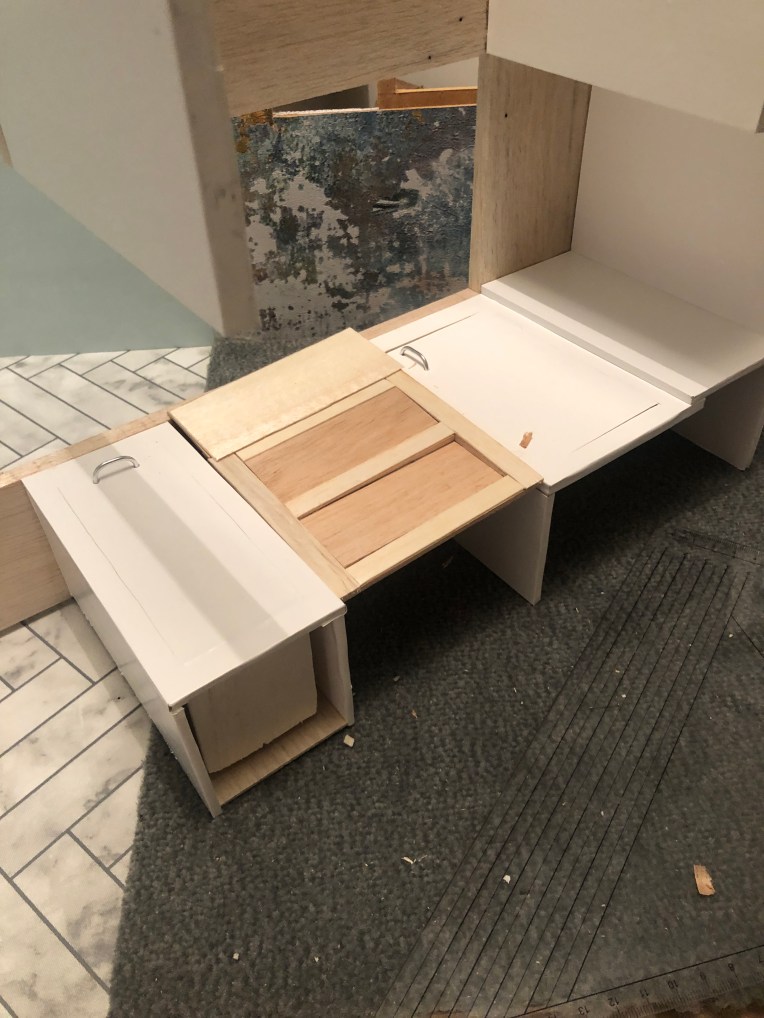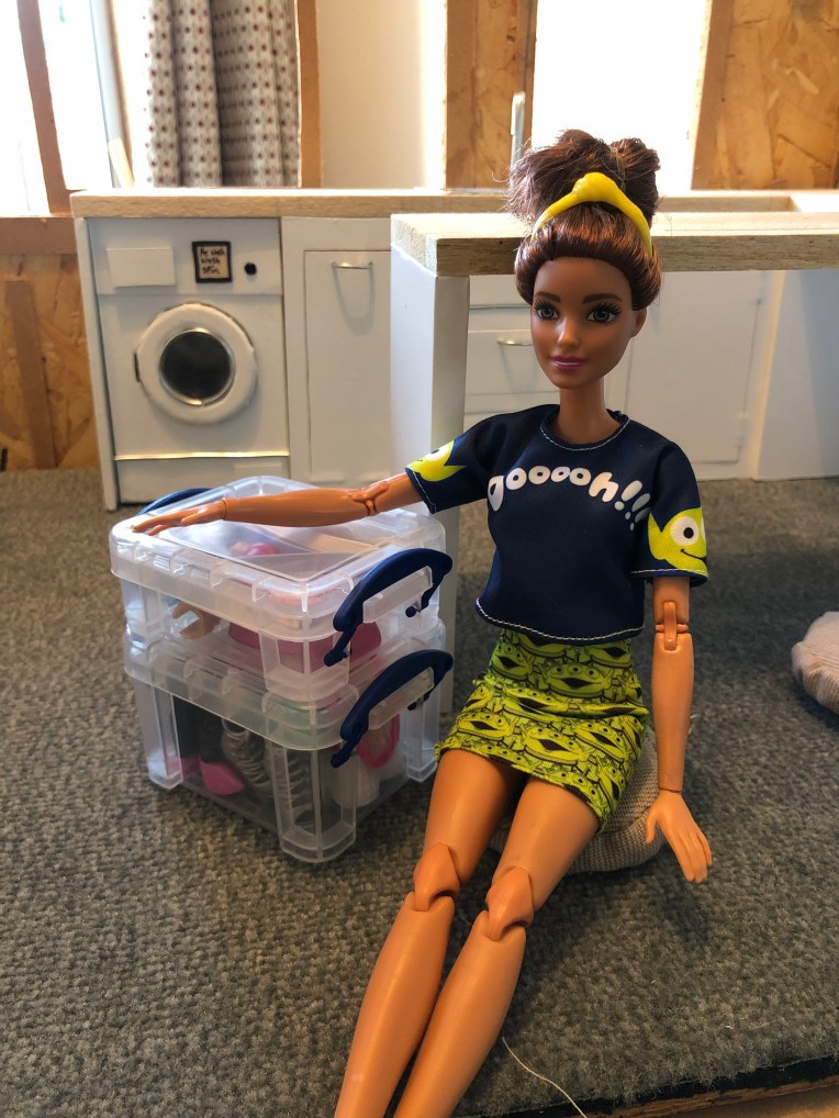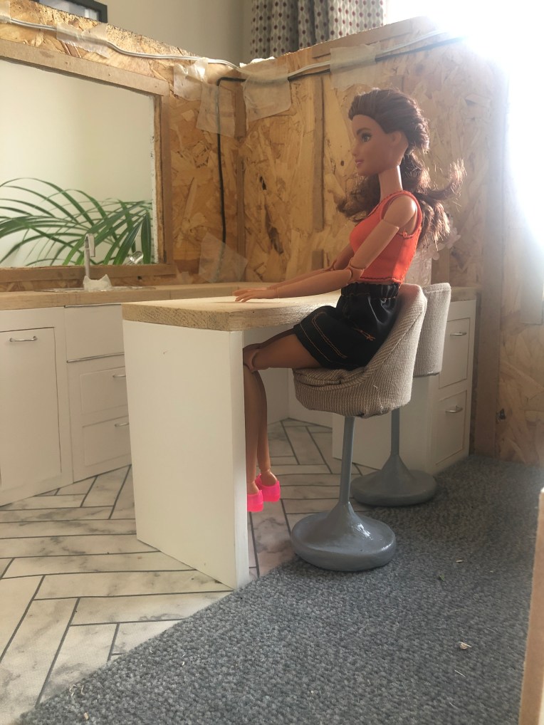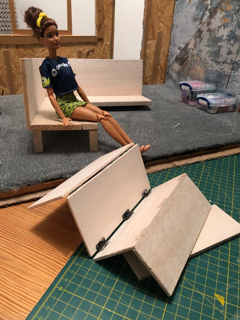 The below photos are from September, I continued on with the couch, creating 7 pillows: making them work as pillows and also creating the double bed. I then went back to the kitchen to work on some roller blinds using hooks, material and a craft chain.