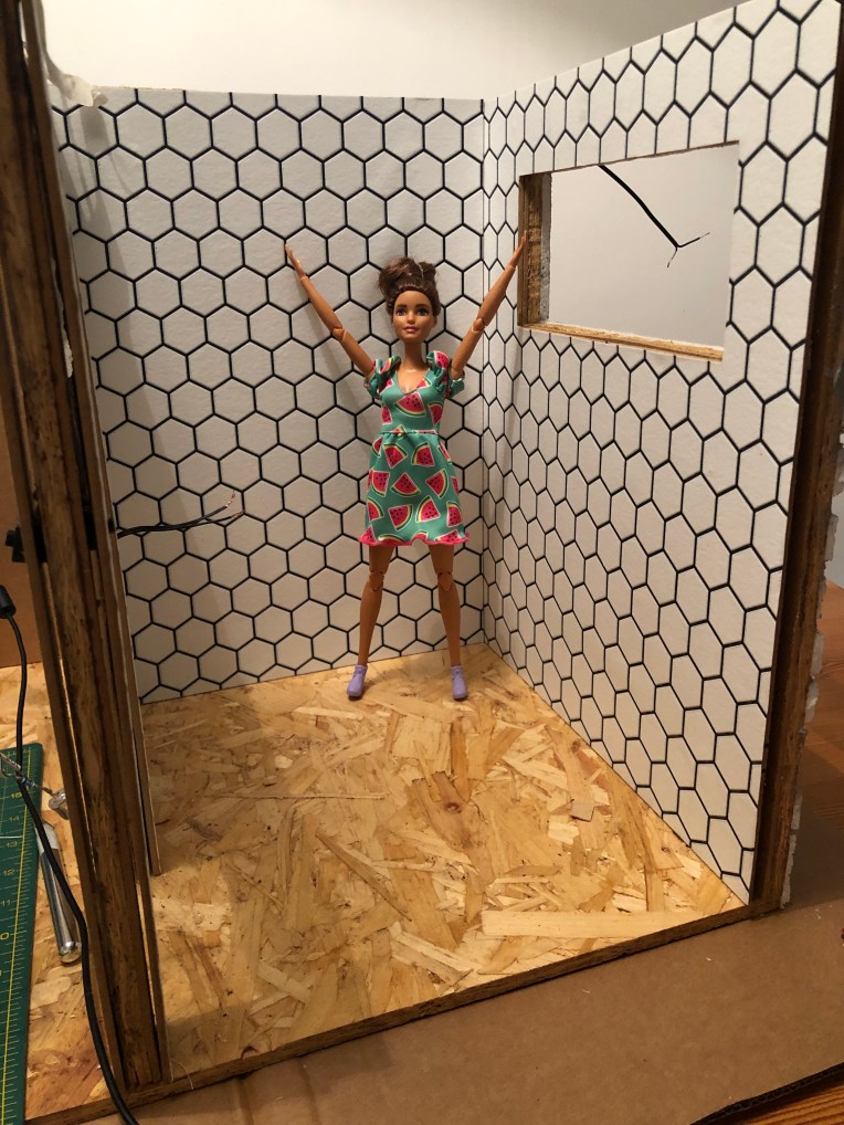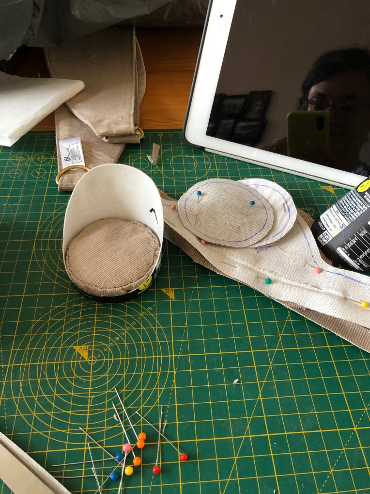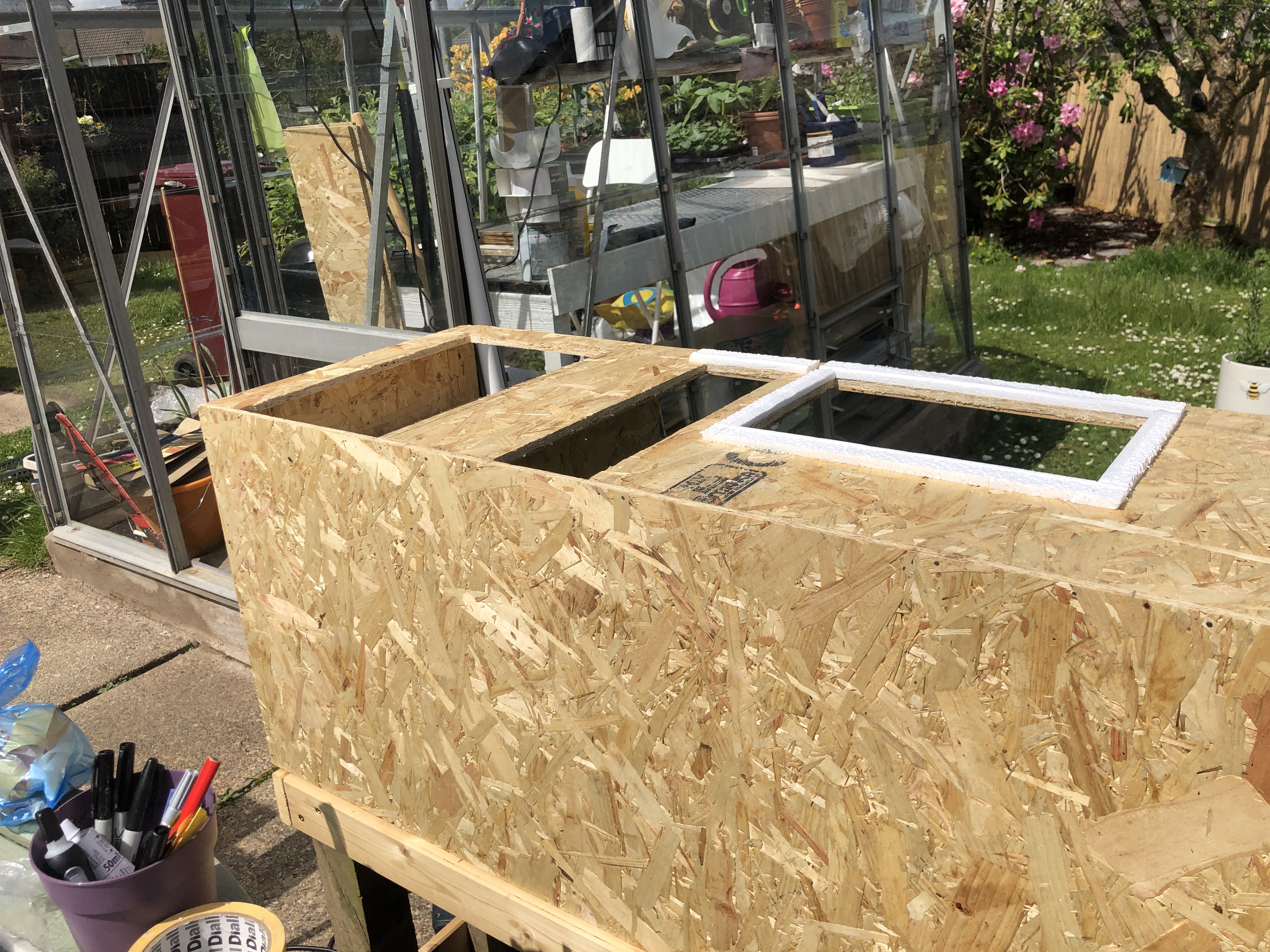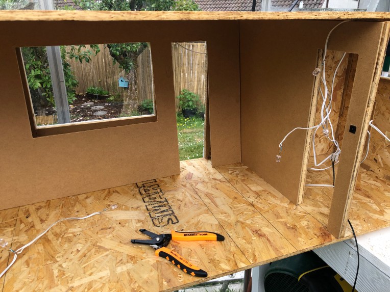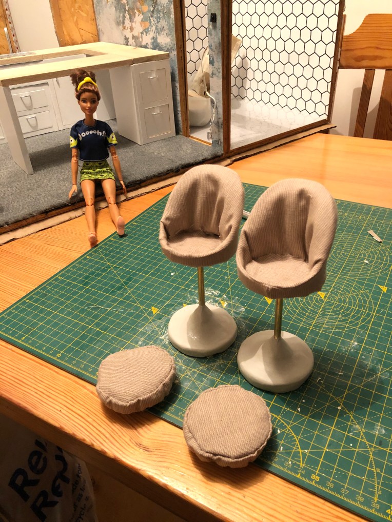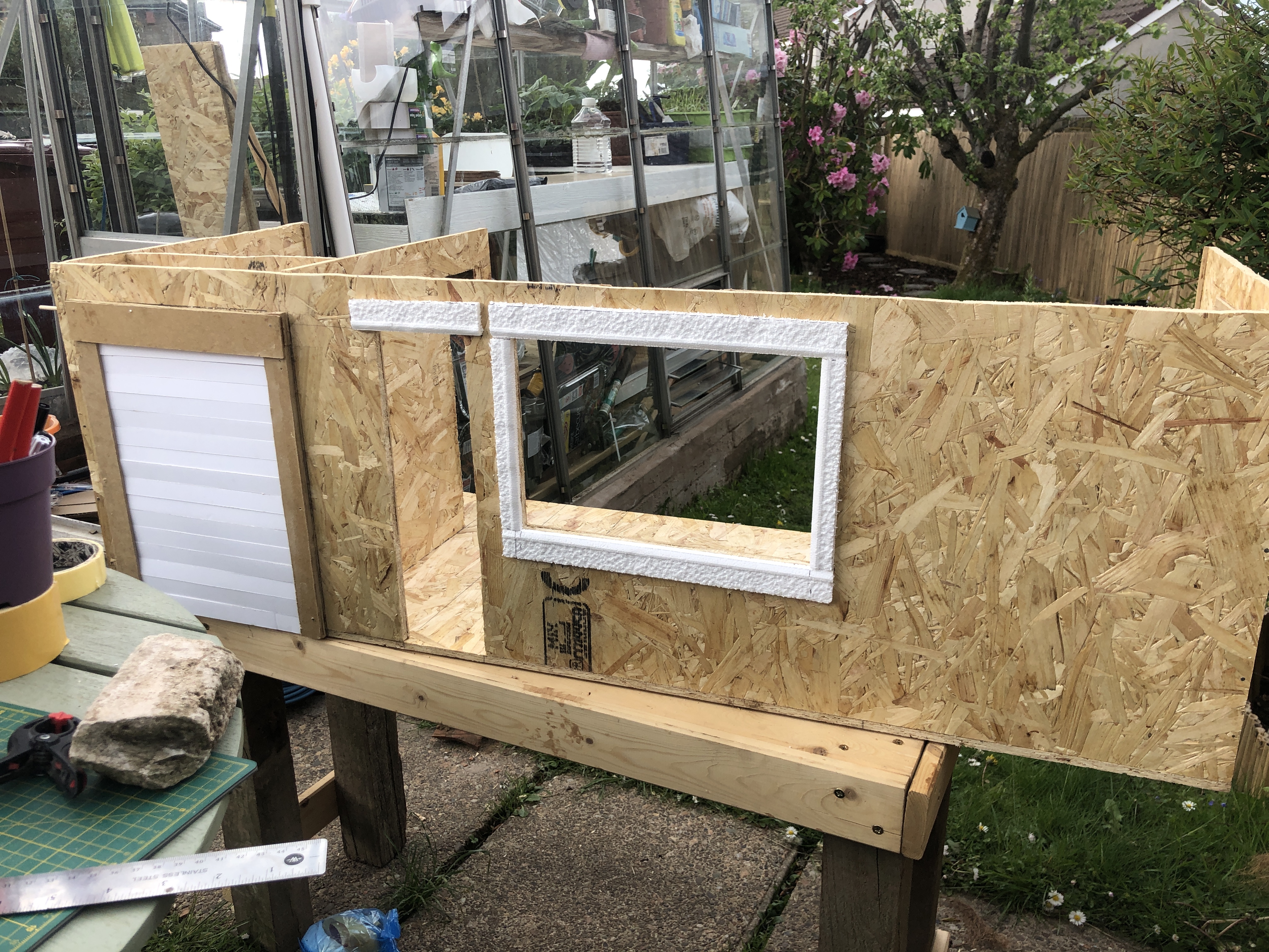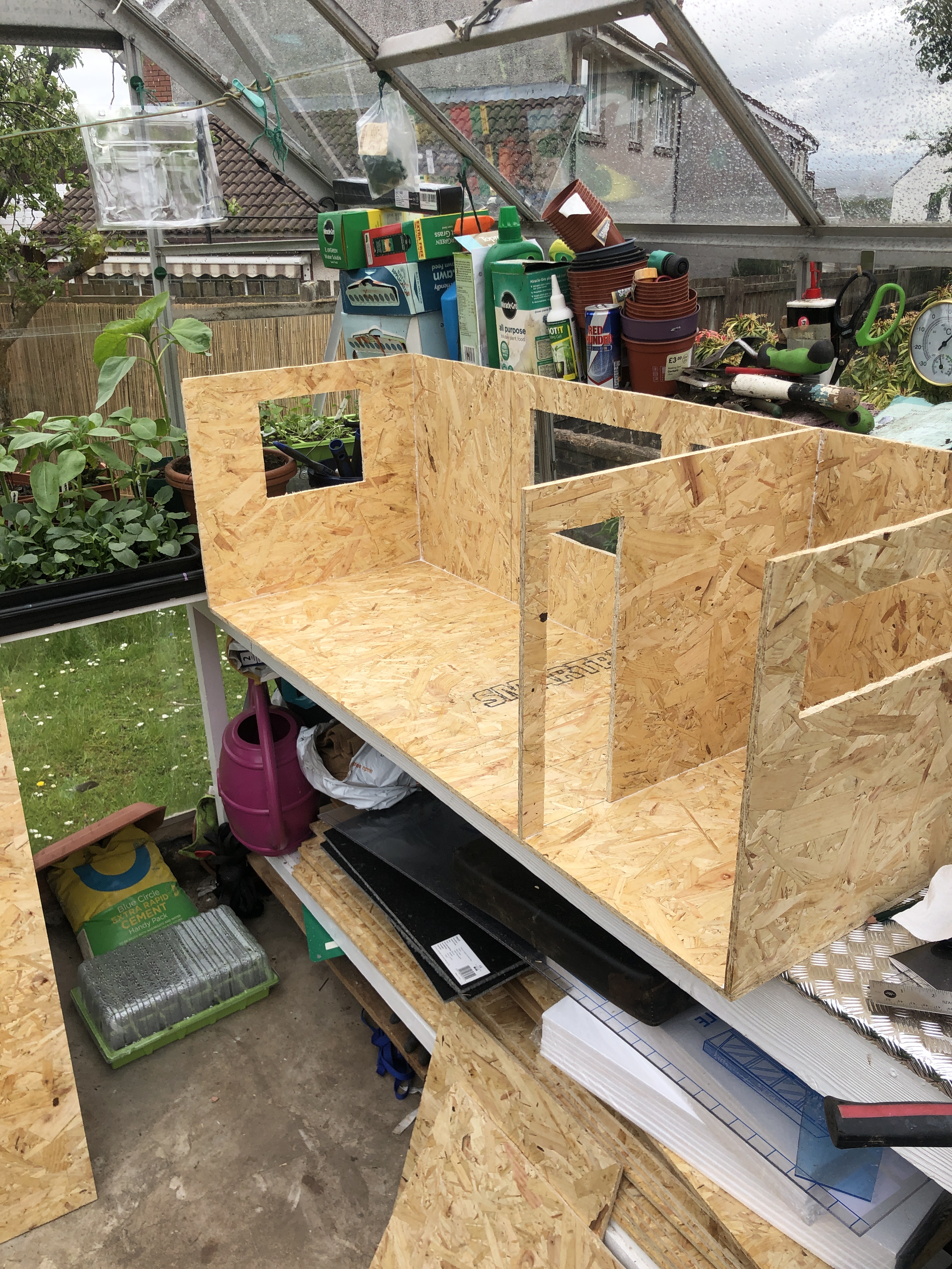The below photos are from September, I continued on with the couch, creating 7 pillows: making them work as pillows and also creating the double bed. I then went back to the kitchen to work on some roller blinds using hooks, material and a craft chain.